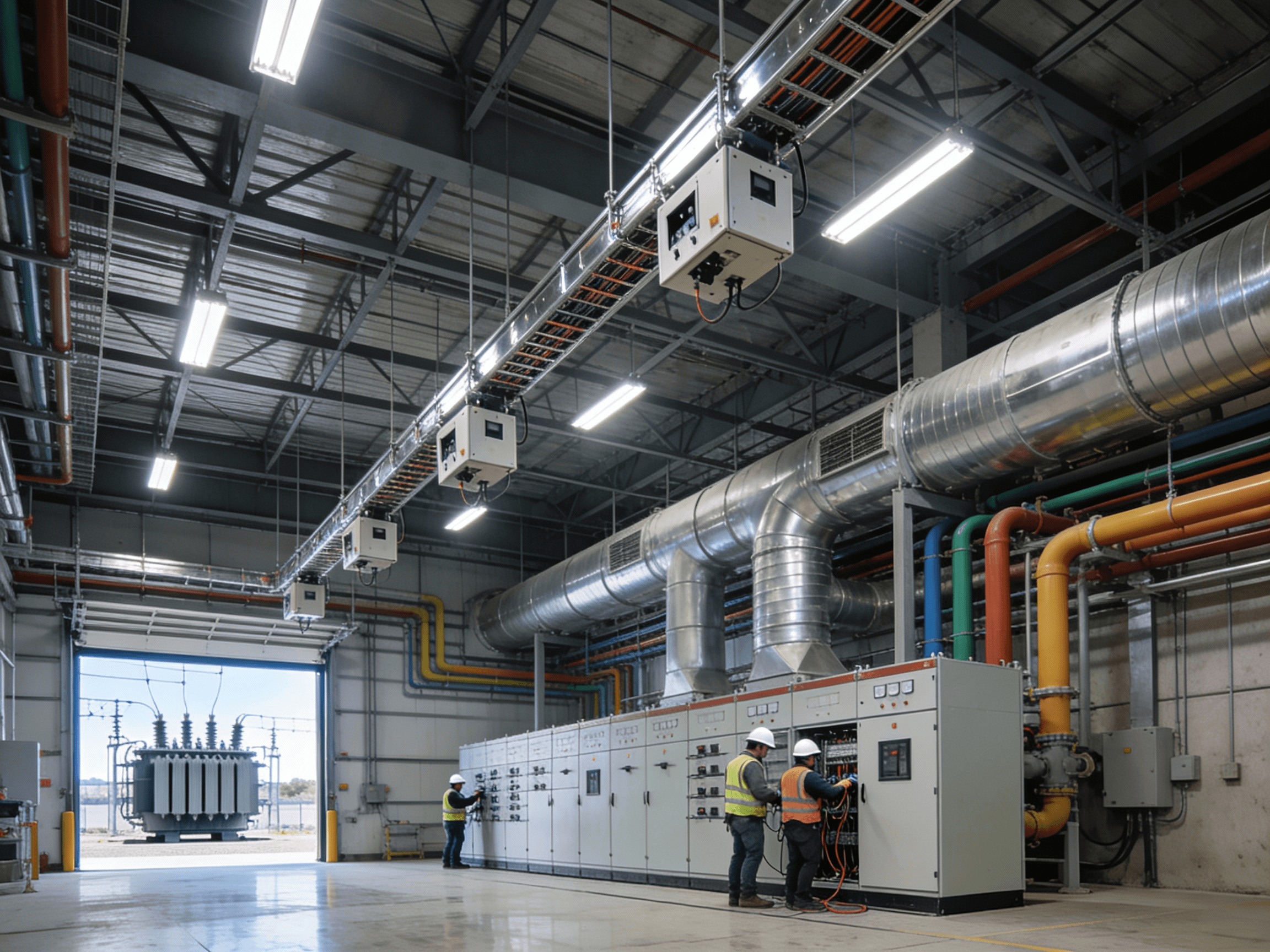 Ejecutamos redes de media tensión subterránea, subestaciones, sistemas de electroductos para maquinaria, alumbrado industrial de gran escala y climatización HVAC.